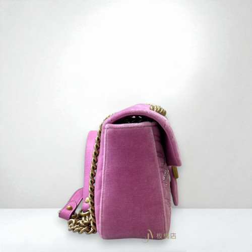 • JY0374 GUCCI包包 MARMONT 粉絲絨布復古金釦鑲寶石小號下蓋斜肩背包 443497 (板橋店)