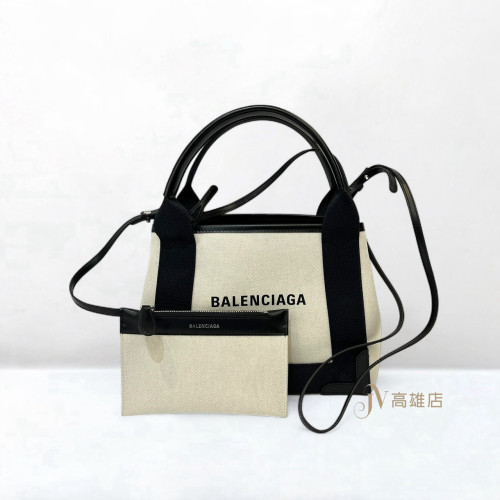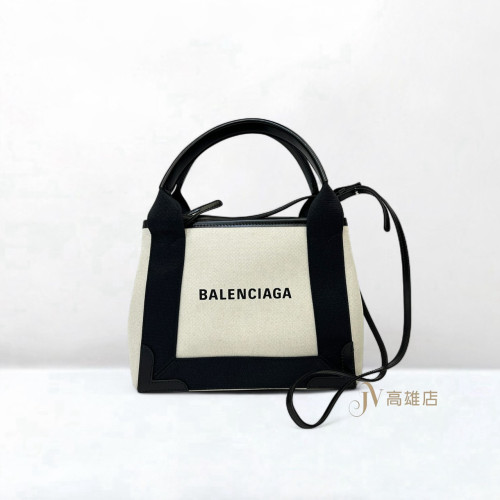 JK1830 Balenciaga包包米帆布拚黑牛皮銀釦Navy Cabas XS手提斜背包(喬萱高雄店)