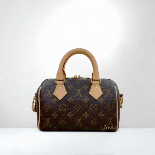 JA1940 LV包包 原花奶茶寬背帶紅內Speedy20波士頓包M46222 (桃園店)