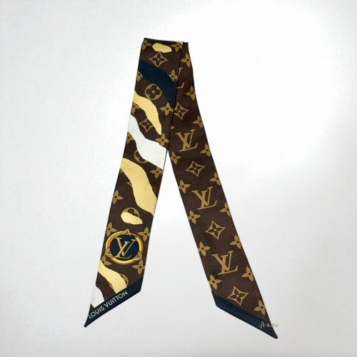 JA0357 LV絲巾 深咖啡色老花迷彩長絲巾 (桃園店)