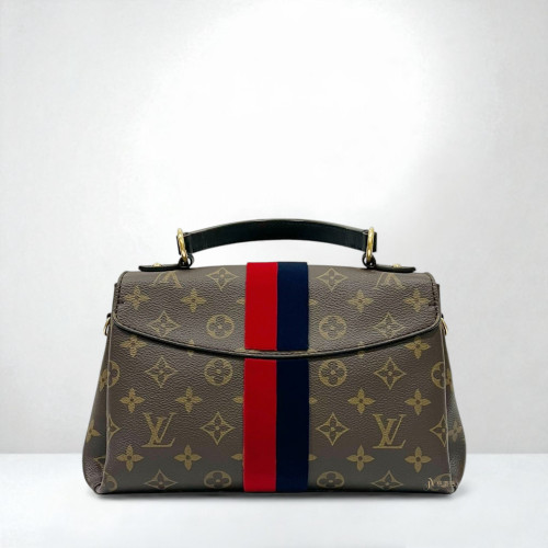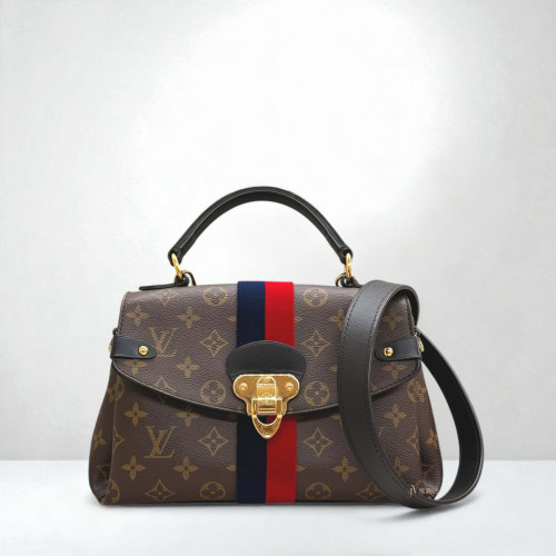 JA1561 LV包包 原花拼藍紅絨布直條紋bond georges BB手提側背包/M43866 (桃園店)