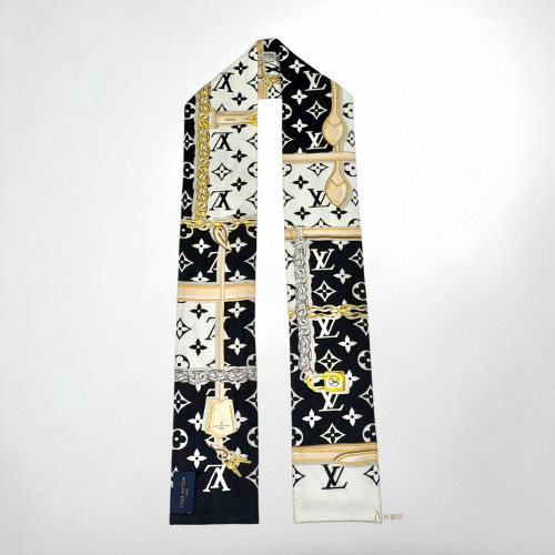 JA1806 LV絲巾 黑白老花拼皮繩圖騰twilly寬絲巾M78656 (桃園店)