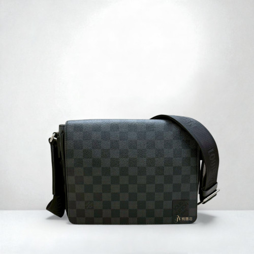JA1978 LV包包 黑灰棋盤格帆布下蓋斜背郵差包N42710 (桃園店)