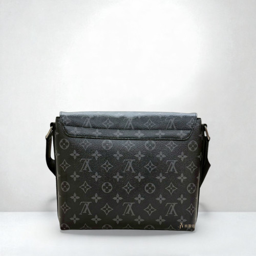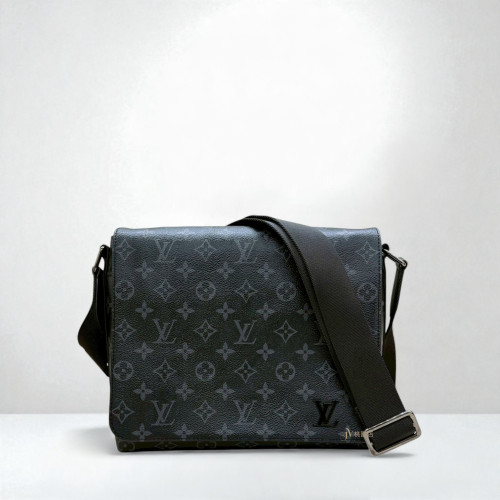 JA2013 LV包包 黑灰原花銀釦District PM黑logo下蓋磁吸肩斜背包 M45272 (桃園店)
