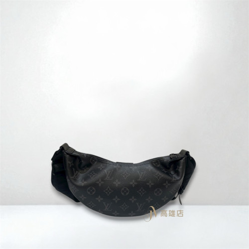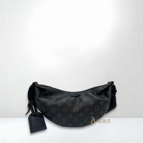 JK1872 LV包包 黑灰原花黑釦Hamac PM斜背彎月包M47158(喬萱高雄店)