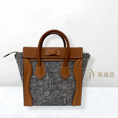 JK1838 Celine包包 單寧拼焦糖牛皮金釦Nano Luggage手提斜背冏包189242CKN.07AT (喬萱高雄店)