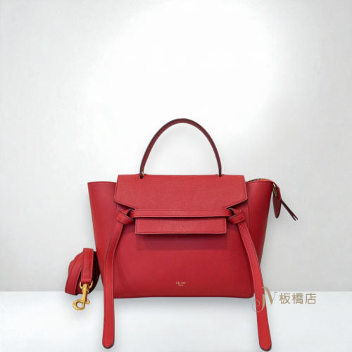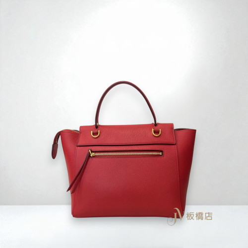 JS1154 Celine包包 寶石紅粒紋牛皮belt micro鯰魚包中號 (板橋店)