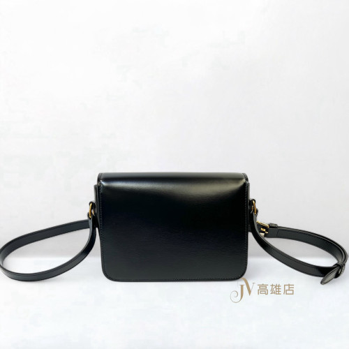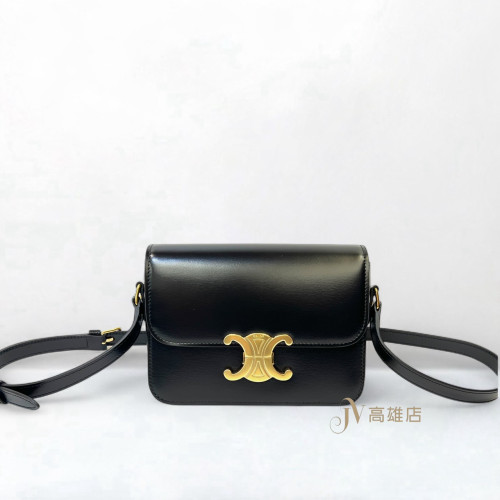JK1833 Celine包包 黑滑面牛皮金釦下蓋Teen Triomphe斜背包188423BF4 38NO(高雄店)