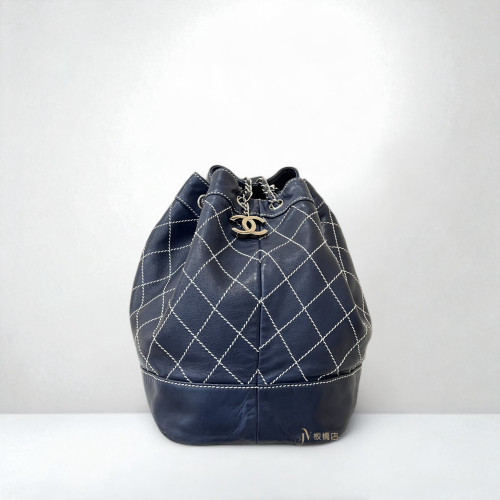 JS1169 CHANEL包包 藍羊皮白線菱格紋水桶包 (板橋店)