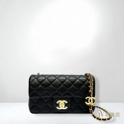 JK1944 Chanel包包 黑羊皮菱格霧金雙C logo調節釦下蓋mini COCO20AS5759(高雄店)