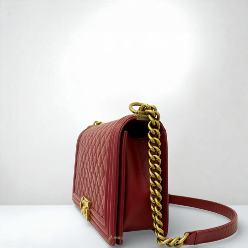 JS0018 CHANEL包包 棗紅金釦羊皮菱格boy28/A92193 (板橋店)