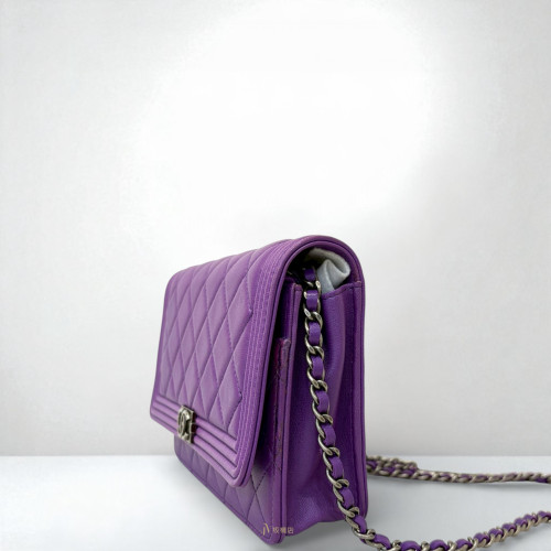 JS0874 CHANEL包包 紫色羊皮銀釦 BOY WOC AP1117 (板橋店)