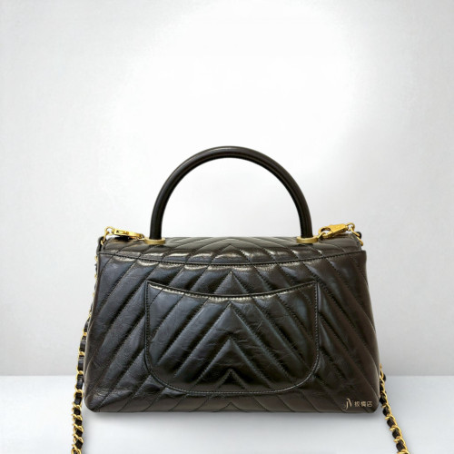 JS0883 CHANEL包包 黑金山形紋油蠟牛皮coco handle 28 (板橋店)