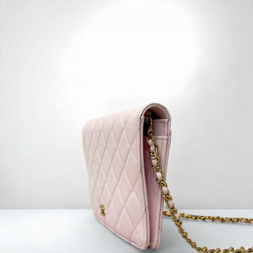 JS0885 CHANEL包包 淡粉色荔枝皮金釦鏈帶翻蓋練包AP2595 (板橋店)