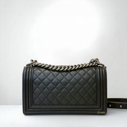 JS0961 CHANEL包包 BOY 25 黑色菱格牛皮銀釦口蓋包 A67086 (板橋店)