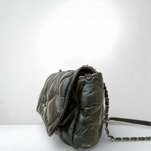 JS0983 CHANEL包包 黑色油蠟牛皮空氣感菱格復古銀釦口蓋包 (板橋店)