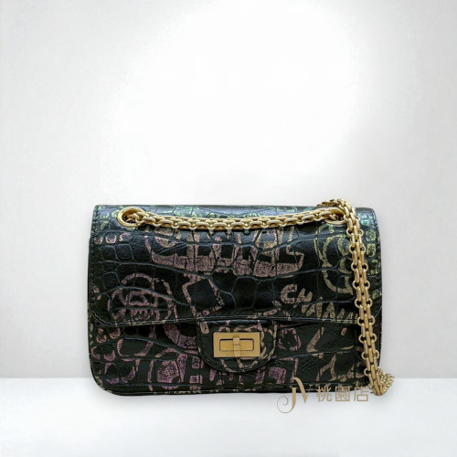JA1872 CHANEL包包 黑金鱷魚壓紋牛皮MINI2.55埃及系列下蓋包 (桃園店)