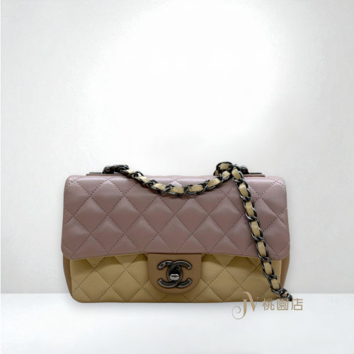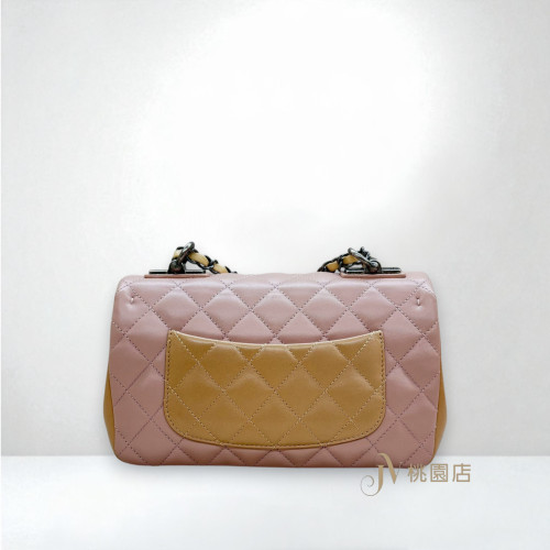 JA1873 CHANEL包包 粉拼色銀釦菱格羊皮季節限定口蓋包 (桃園店)
