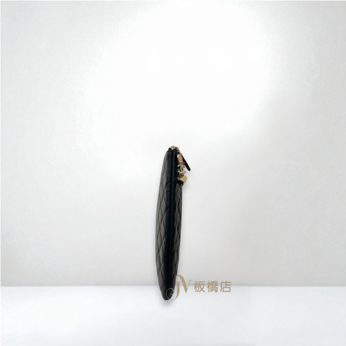 JS1121 CHANEL包包 黑色羊皮淡金釦愛心珍珠骰子吊飾手拿包 /A82416 (板橋店)