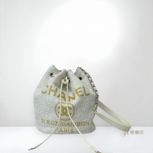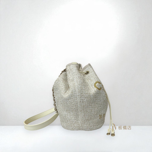 JS1155 CHANEL包包 白色金線毛呢金字水桶包A57536 (板橋店)