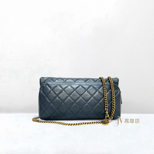 JK1858 Chanel包包 藍色牛皮菱格霧金釦前下蓋後拉鍊金幣肩背包A67489(高雄店)