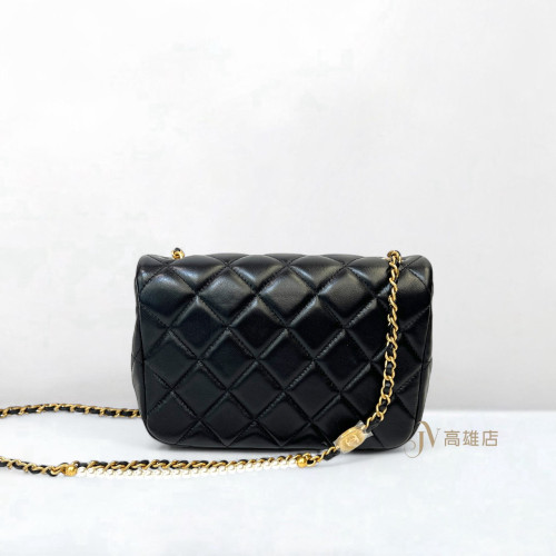 JK1821 Chanel包包黑羊皮菱格紋珍珠金幣皮穿鏈下蓋斜背鏈包AS5352(喬萱高雄店)