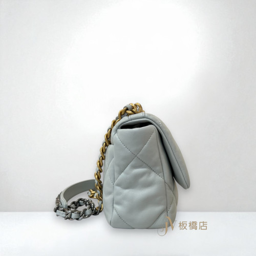 JS1078 CHANEL包包 19系列冰川藍羊皮金釦小號口蓋包 AS1160 (板橋店)