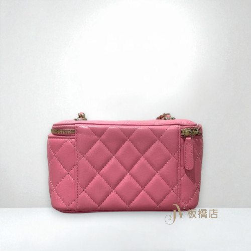 JS1117 CHANEL包包 淡粉色羊皮金釦長型鏈帶化妝盒 AP1472 (板橋店)