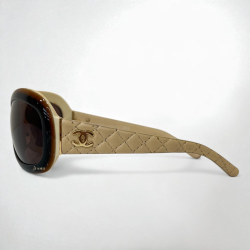 JS1196 Chanel墨鏡 棕黑拚米色菱格紋金色雙C墨鏡 (板橋店)