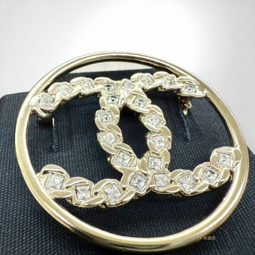 JA2063 CHANEL胸針 金色圓環雙C拚方水晶胸針 (桃園店)