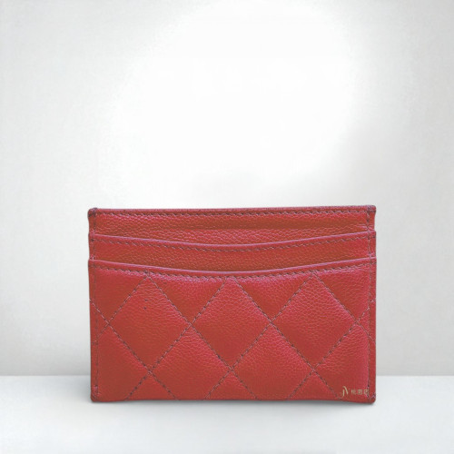 JA2089 CHANEL卡夾 粉色荔枝牛皮金釦卡片夾 (桃園店)