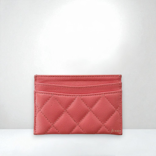 JA2089 CHANEL卡夾 粉色荔枝牛皮金釦卡片夾 (桃園店)