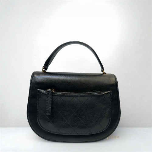 JK1919 Chanel包包 黑牛皮霧金黑雙C下蓋CoCo Carve後拉鍊口袋手提斜背馬鞍包(高雄店)