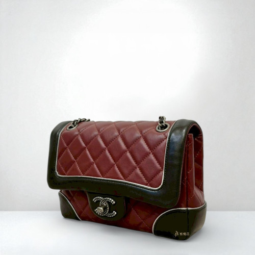 JS0023 CHANEL包包 酒紅羊皮滾黑邊特殊cc釦mini coco (板橋店)