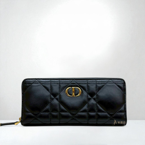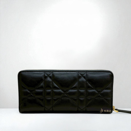 JA2315 DIOR皮夾 黑色大藤格紋羊皮Miss Caro Voyageurㄇ拉長夾S5208UHAG (桃園店)