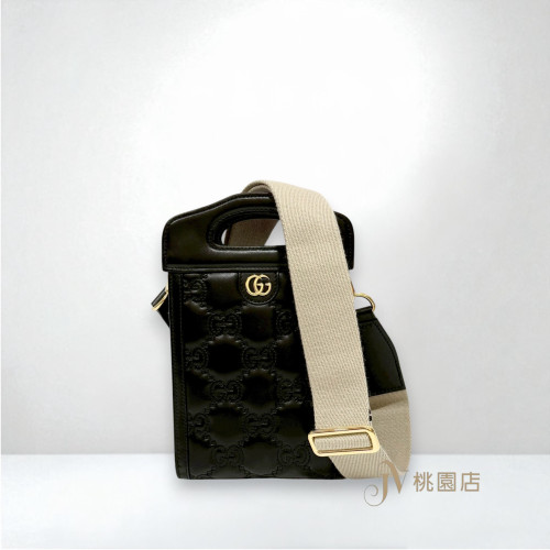 JK1766 Gucci包包黑牛皮小G壓紋淡金釦手提斜背貝殼包(喬萱高雄店)