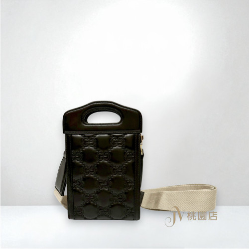 JA1862 GUCCI包包 黑金牛皮壓紋縫線直立手機包723776 (桃園店)