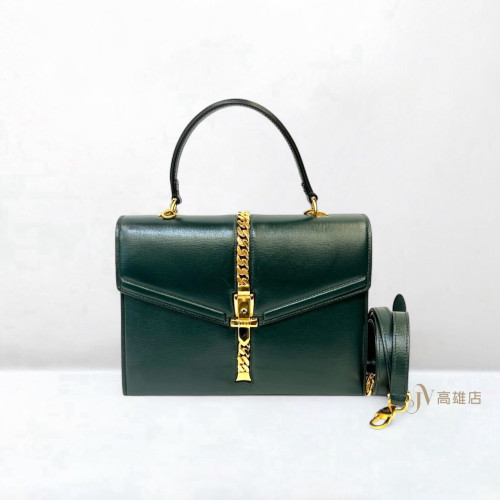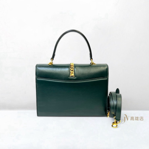 JK0363 Gucci包包綠牛皮金釦下蓋單手提斜背包小Sylvie1969(喬萱高雄店)