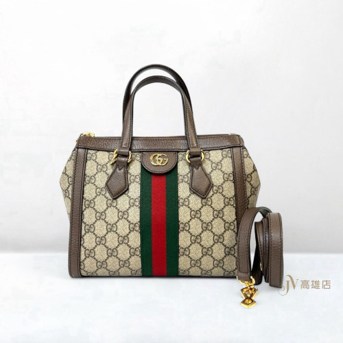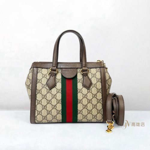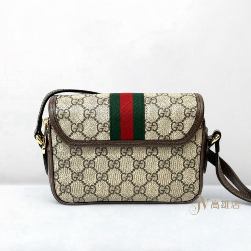 JK1771 Gucci包包PVC 咖牛皮邊Ophidia綠紅綠織帶金釦一字拉方形手提斜背包(喬萱高雄店)