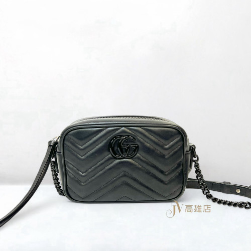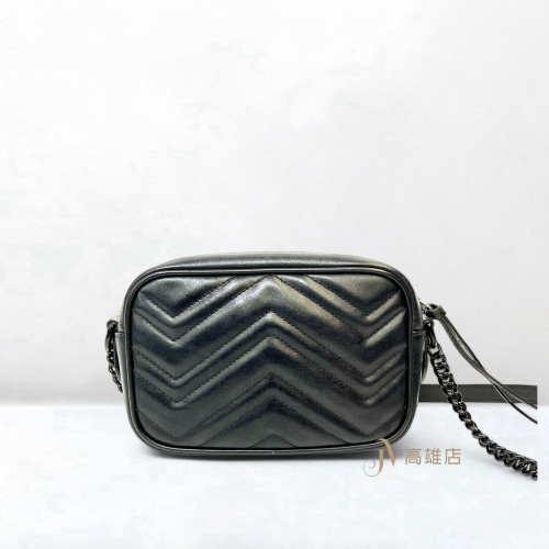 JK1813 Gucci包包黑牛皮山形紋黑釦Mini Marmont相機包(喬萱高雄店)
