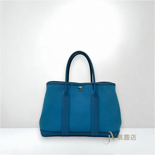 JA1867 HERMES包包 7W伊茲密爾藍帆布銀釦Garden party 30cm (桃園店)
