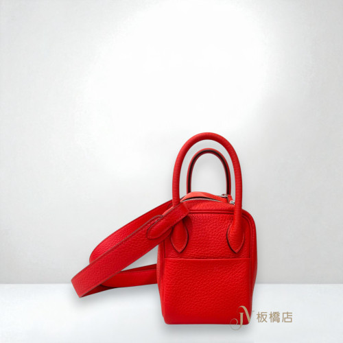 JS1105 HERMES包包 S3心紅色銀釦TC皮MINI LINDY (板橋店)