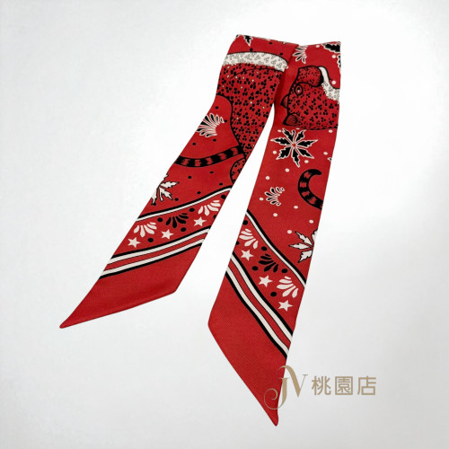JA0233 HERMES絲巾 紅色花豹 TWILLY (桃園店)