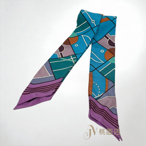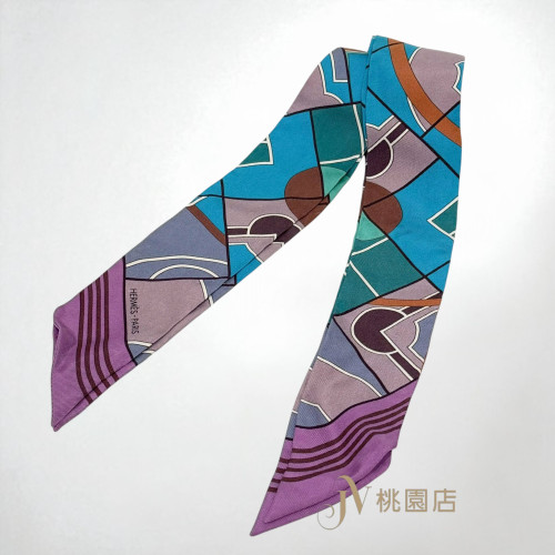 JA0293 HERMES絲巾 藍紫綠字母LOGO幾何造型 TWILLY一對 (桃園店)