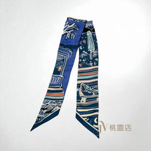 JA0432 HERMES絲巾 藍底白花燕子圖單條TWILLY (桃園店)