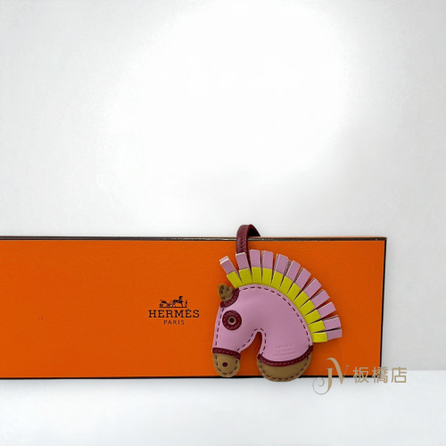 JS1144 HERMES吊飾 粉黃棕三拼Geegee Camail Zebra馬頭吊飾 (板橋店)