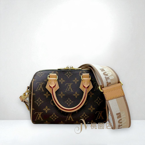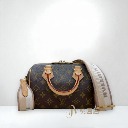 JA1888 LV包包 原花奶茶寬背帶紅內Speedy20波士頓包M46222 (桃園店)