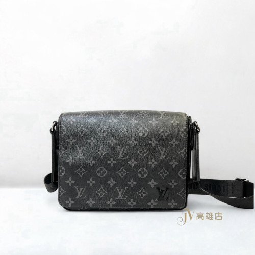 JP0704 LV包包黑灰原花銀釦下蓋District PM斜背郵差包M46255(喬萱高雄店)