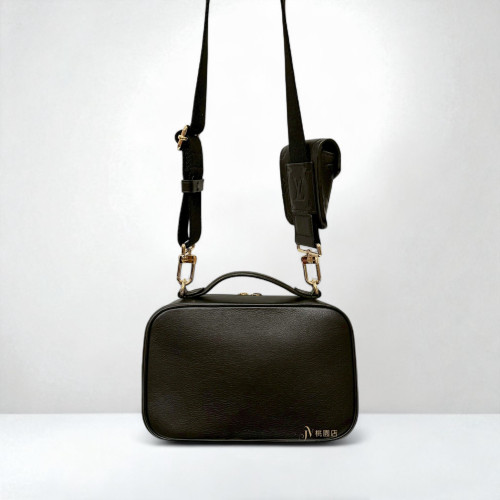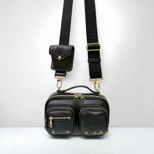 JA1927 LV包包 黑色壓紋牛皮金釦雙口袋UTILITY肩側背包M80450 (桃園店)