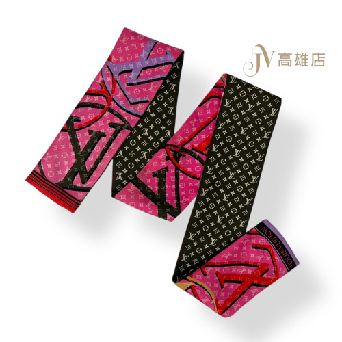 JP0135 LV絲巾粉紅底大Logo拚墨綠滿版Logo Planet Twilly M77320(喬萱高雄店)